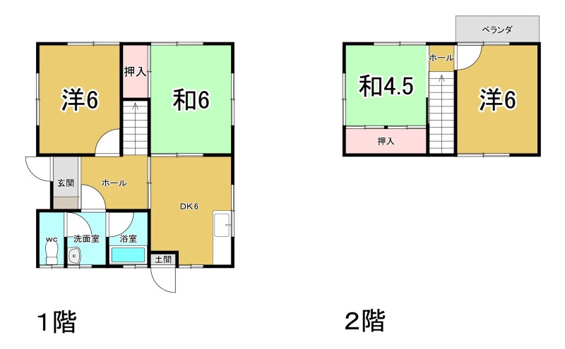 | 設備 | 上水道、汲取、プロパンガス、電気、南面バルコニー、側溝、南庭、バス・トイレ別、浴室に窓、トイレ、洗面台、洗面所 | ||